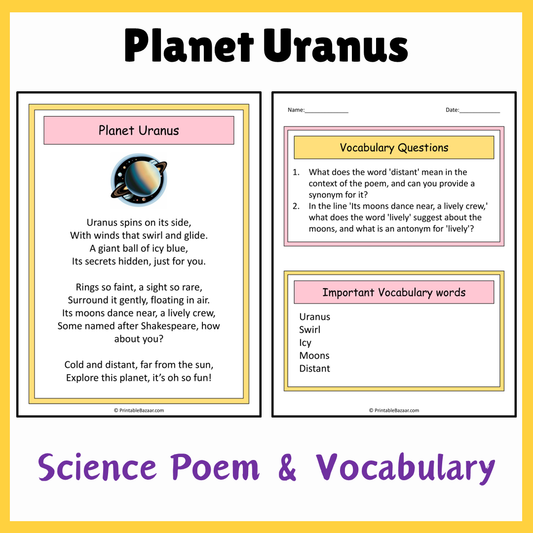 Planet Uranus | Science Poem Reading Comprehension Activity