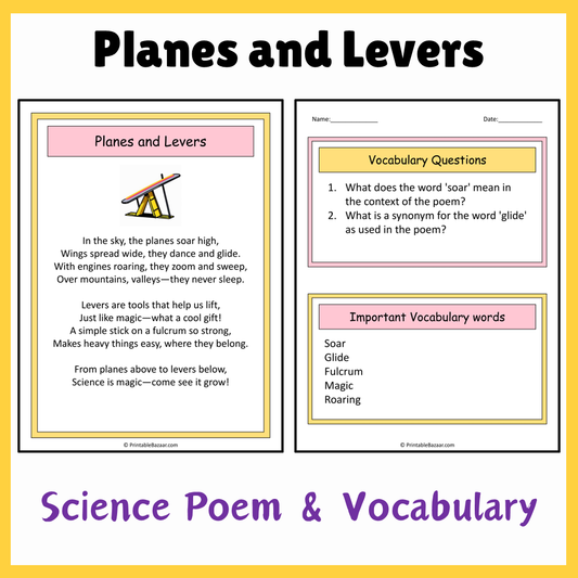 Planes and Levers | Science Poem Reading Comprehension Activity