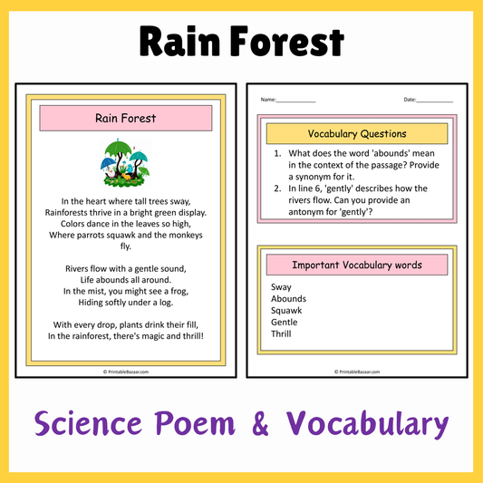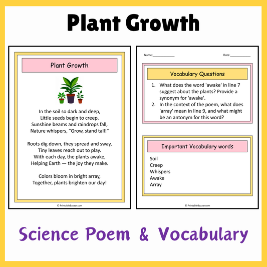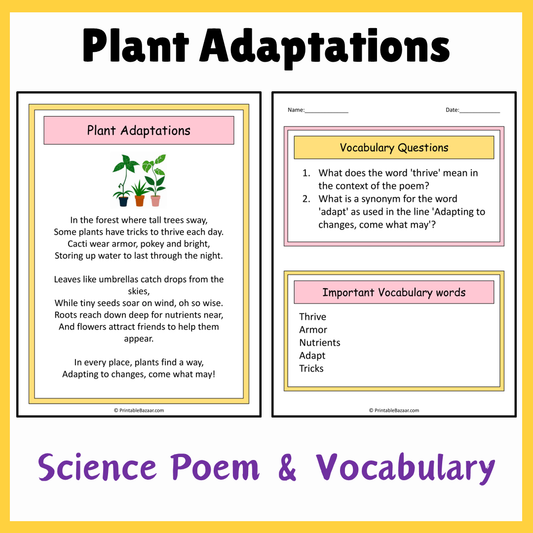Plant Adaptations | Science Poem Reading Comprehension Activity