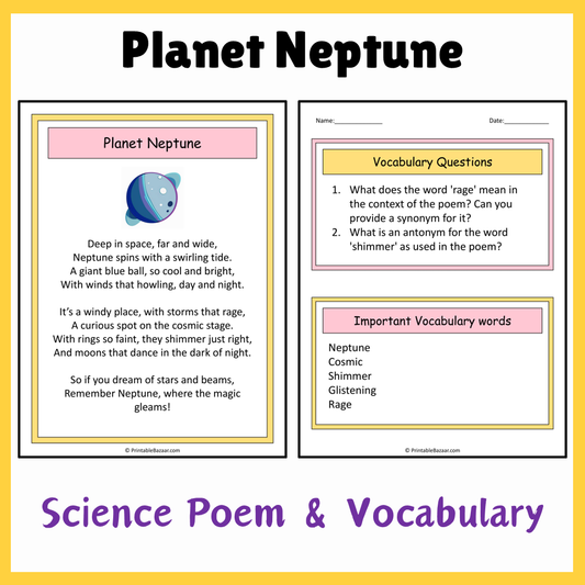 Planet Neptune | Science Poem Reading Comprehension Activity