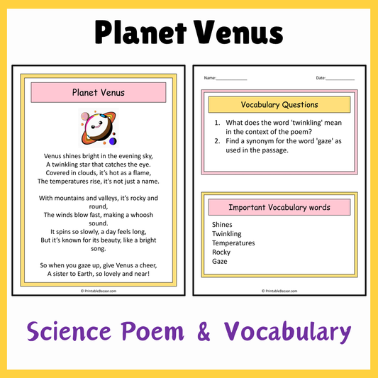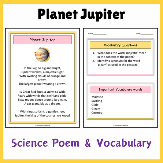Planet Jupiter | Science Poem Reading Comprehension Activity
