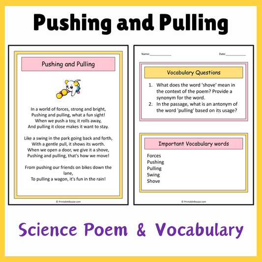 Pushing and Pulling | Science Poem Reading Comprehension Activity