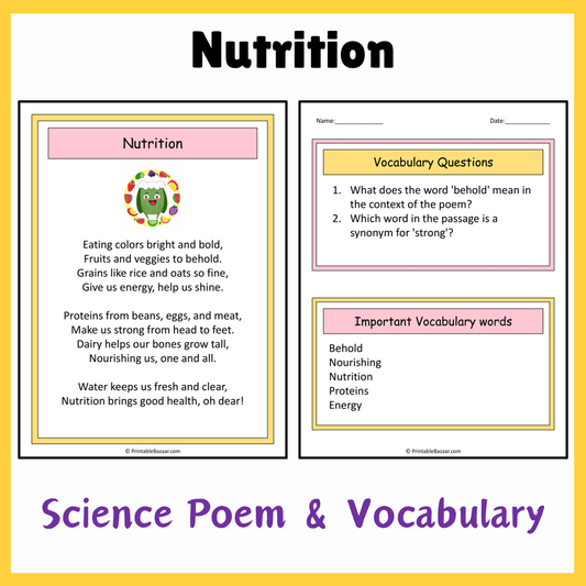 Nutrition | Science Poem Reading Comprehension Activity