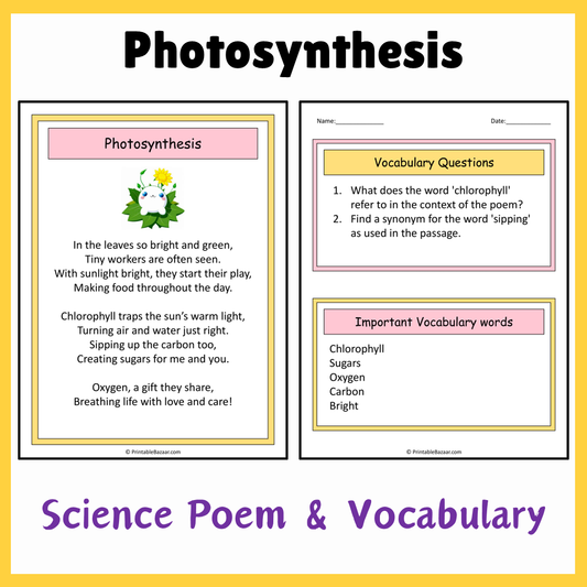 Photosynthesis | Science Poem Reading Comprehension Activity
