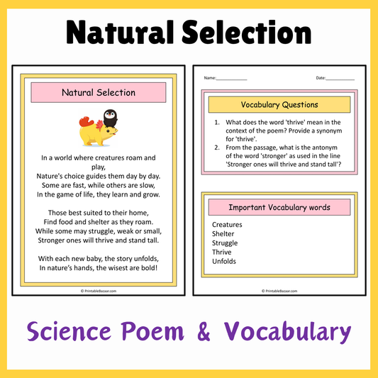 Natural Selection | Science Poem Reading Comprehension Activity
