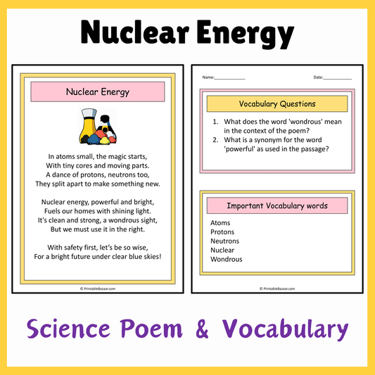 Nuclear Energy | Science Poem Reading Comprehension Activity