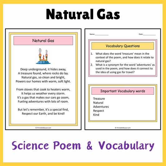 Natural Gas | Science Poem Reading Comprehension Activity