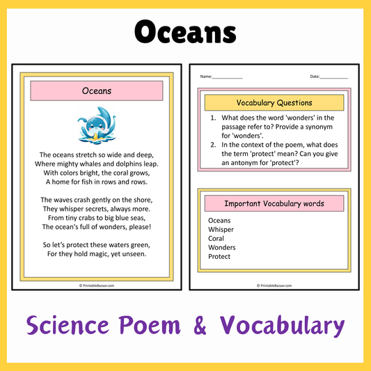Oceans | Science Poem Reading Comprehension Activity