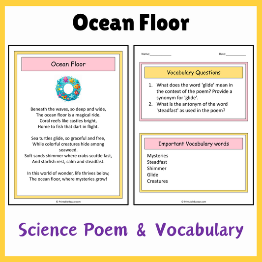Ocean Floor | Science Poem Reading Comprehension Activity