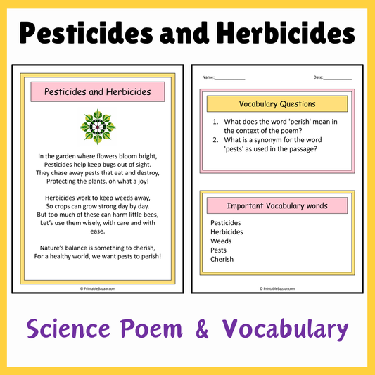 Pesticides and Herbicides | Science Poem Reading Comprehension Activity