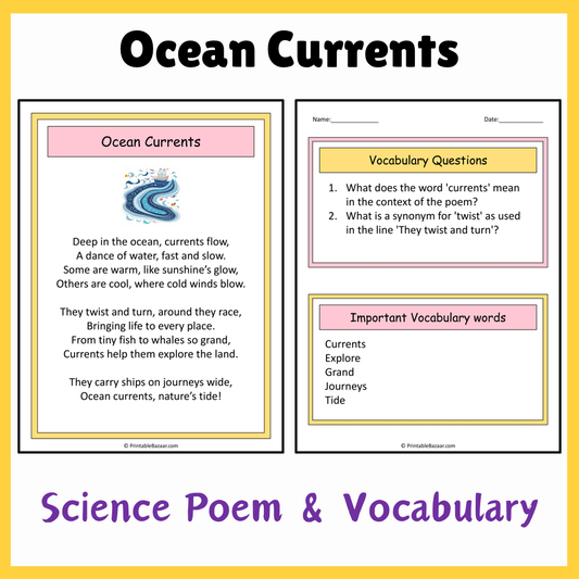 Ocean Currents | Science Poem Reading Comprehension Activity