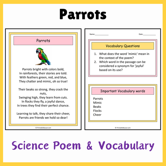 Parrots | Science Poem Reading Comprehension Activity