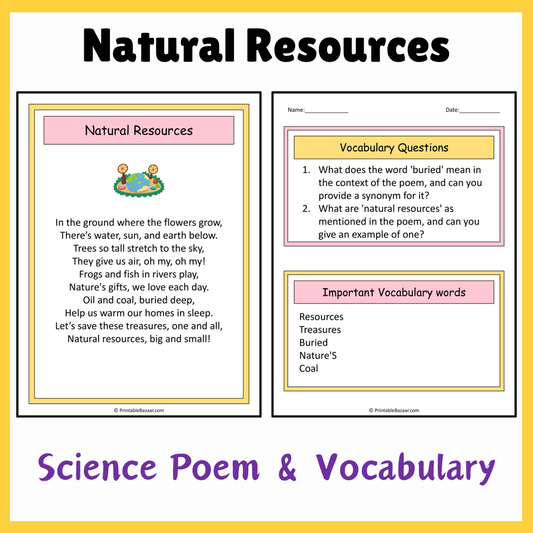 Natural Resources | Science Poem Reading Comprehension Activity