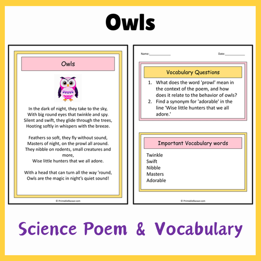 Owls | Science Poem Reading Comprehension Activity