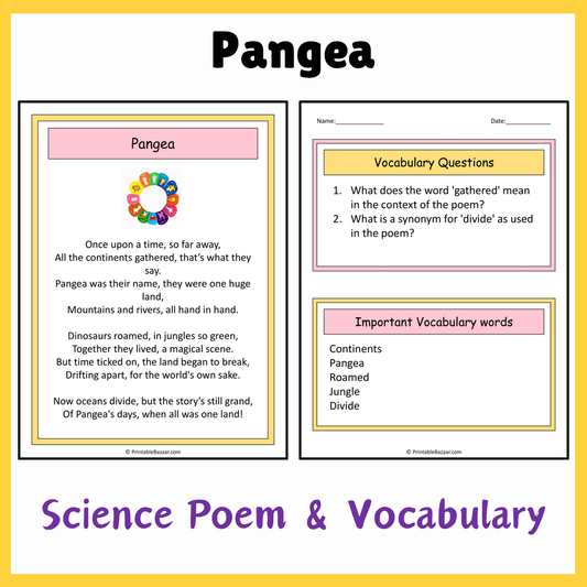 Pangea | Science Poem Reading Comprehension Activity