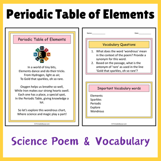 Periodic Table of Elements | Science Poem Reading Comprehension Activity