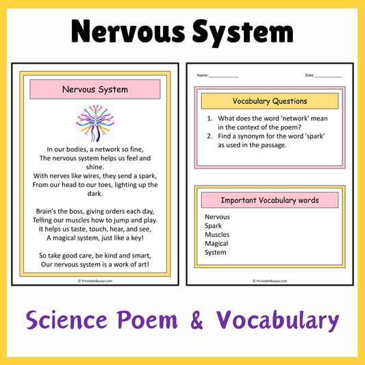 Nervous System | Science Poem Reading Comprehension Activity