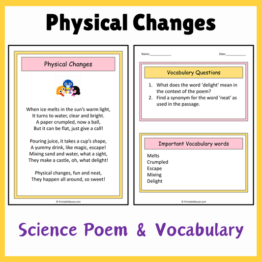 Physical Changes | Science Poem Reading Comprehension Activity