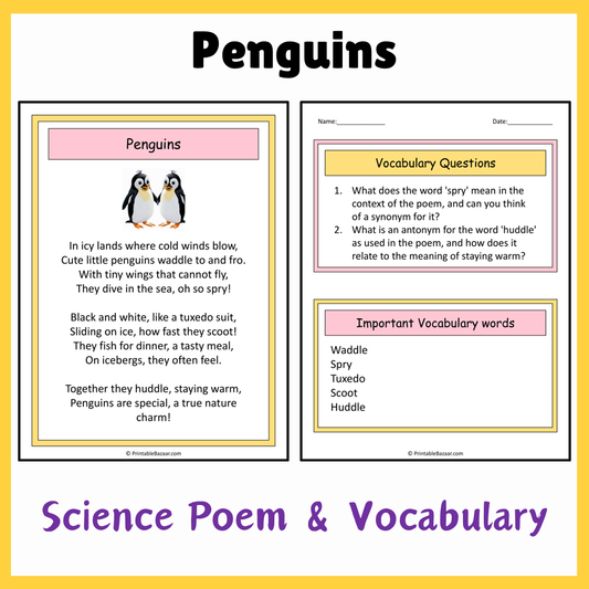 Penguins | Science Poem Reading Comprehension Activity