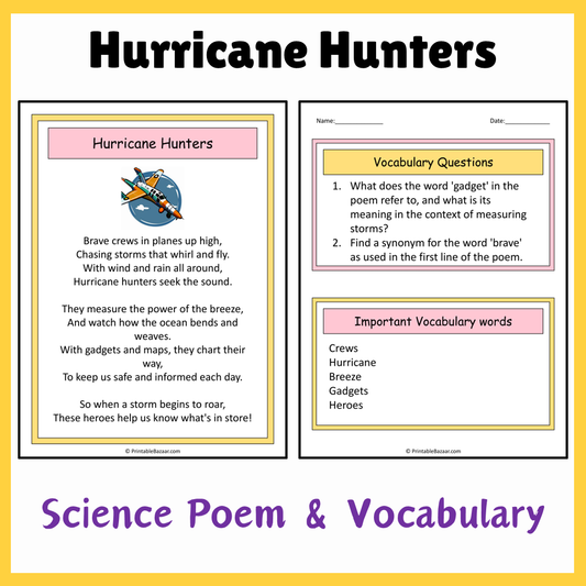 Hurricane Hunters | Science Poem Reading Comprehension Activity