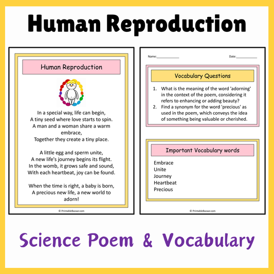 Human Reproduction | Science Poem Reading Comprehension Activity