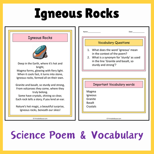 Igneous Rocks | Science Poem Reading Comprehension Activity