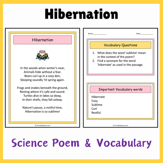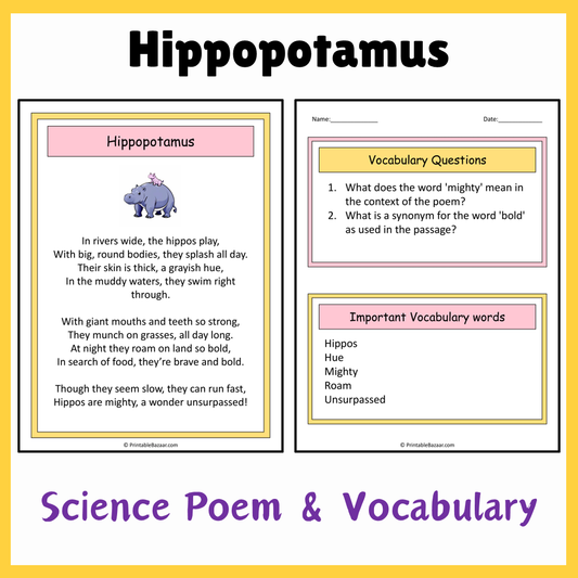 Hippopotamus | Science Poem Reading Comprehension Activity