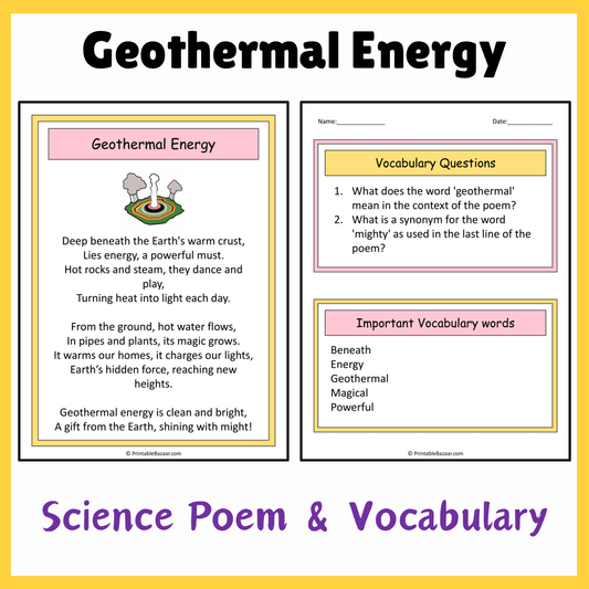 Geothermal Energy | Science Poem Reading Comprehension Activity