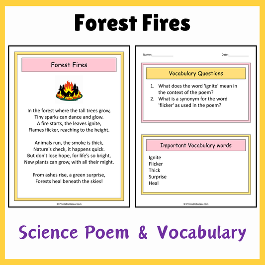 Forest Fires | Science Poem Reading Comprehension Activity