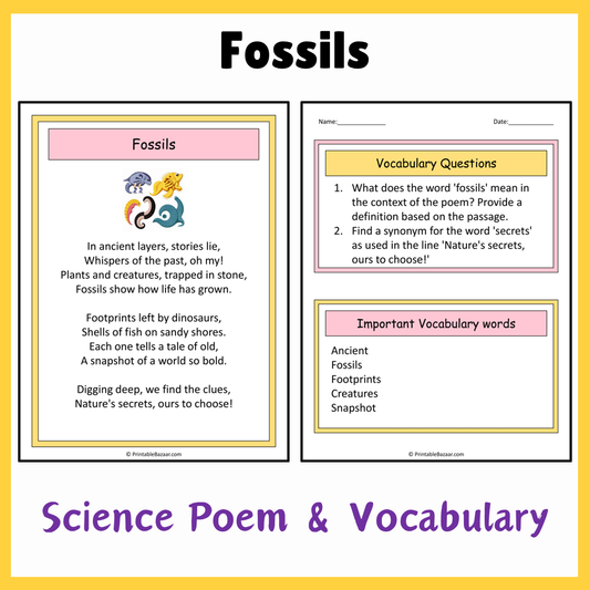 Fossils | Science Poem Reading Comprehension Activity