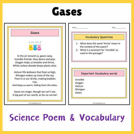 Gases | Science Poem Reading Comprehension Activity