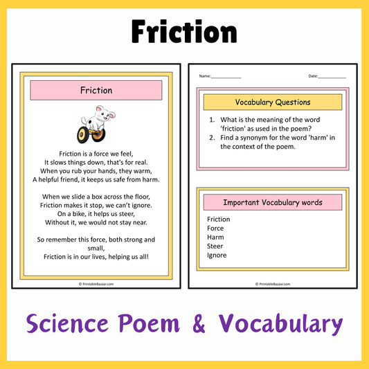 Friction | Science Poem Reading Comprehension Activity
