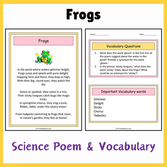 Frogs | Science Poem Reading Comprehension Activity