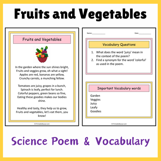 Fruits and Vegetables | Science Poem Reading Comprehension Activity