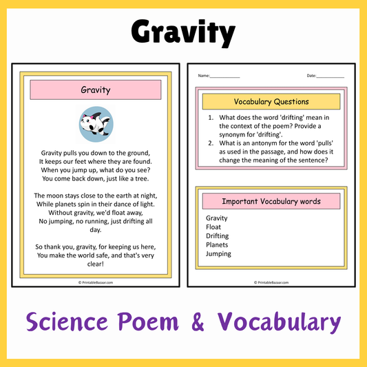 Gravity | Science Poem Reading Comprehension Activity