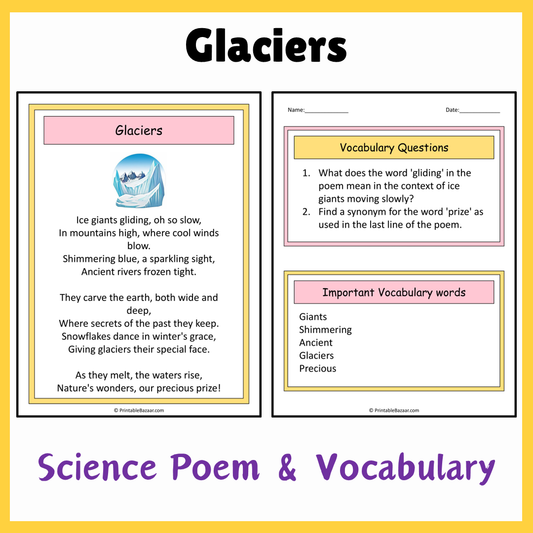 Glaciers | Science Poem Reading Comprehension Activity