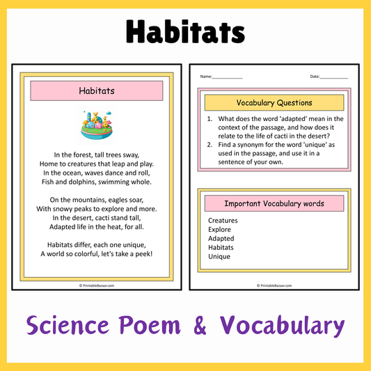Habitats | Science Poem Reading Comprehension Activity