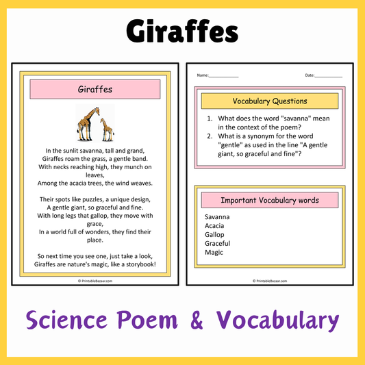 Giraffes | Science Poem Reading Comprehension Activity