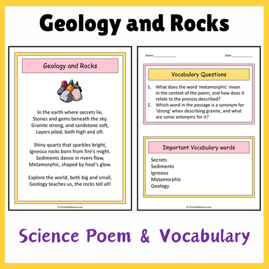 Geology and Rocks | Science Poem Reading Comprehension Activity