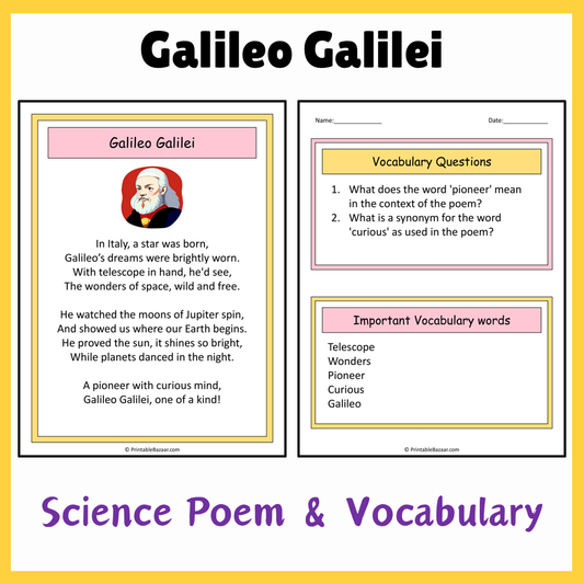 Galileo Galilei | Science Poem Reading Comprehension Activity