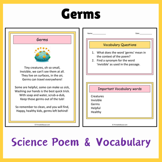 Germs | Science Poem Reading Comprehension Activity