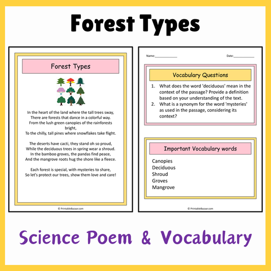 Forest Types | Science Poem Reading Comprehension Activity