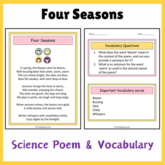 Four Seasons | Science Poem Reading Comprehension Activity