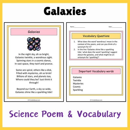 Galaxies | Science Poem Reading Comprehension Activity