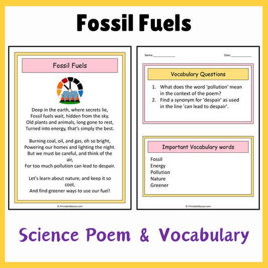 Fossil Fuels | Science Poem Reading Comprehension Activity