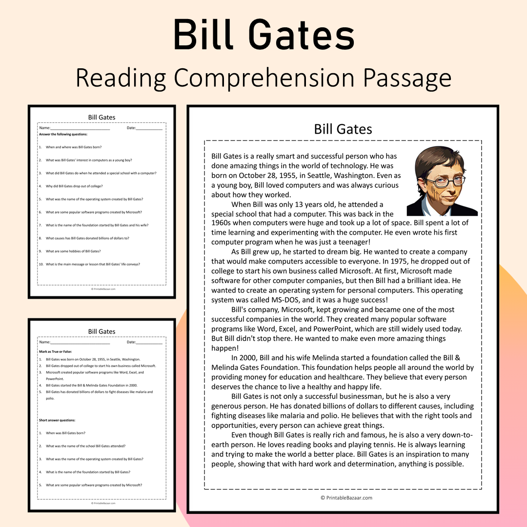- Engaging Reading Passage: Discover the life and achievements of Bill Gates!