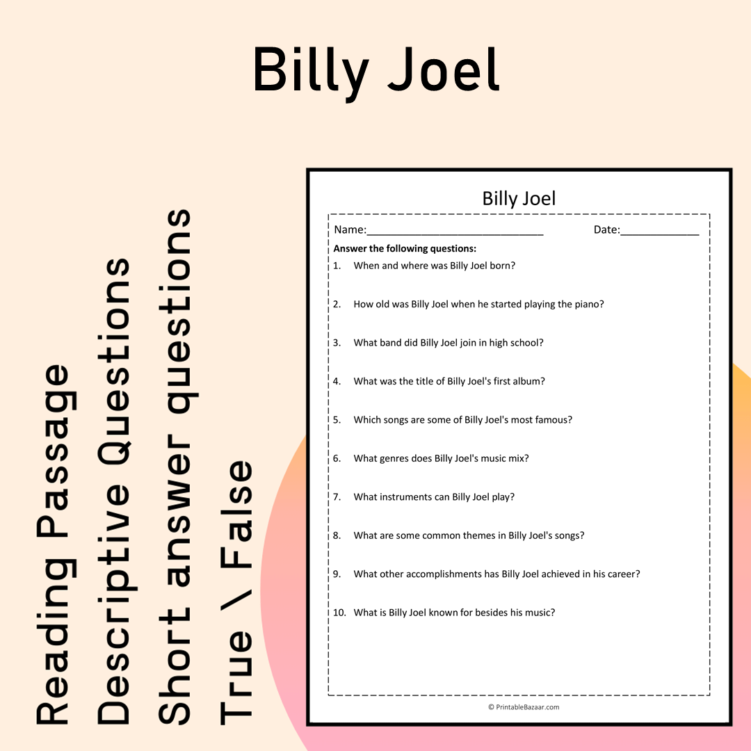 Billy Joel | Reading Comprehension Passage Printable Activity