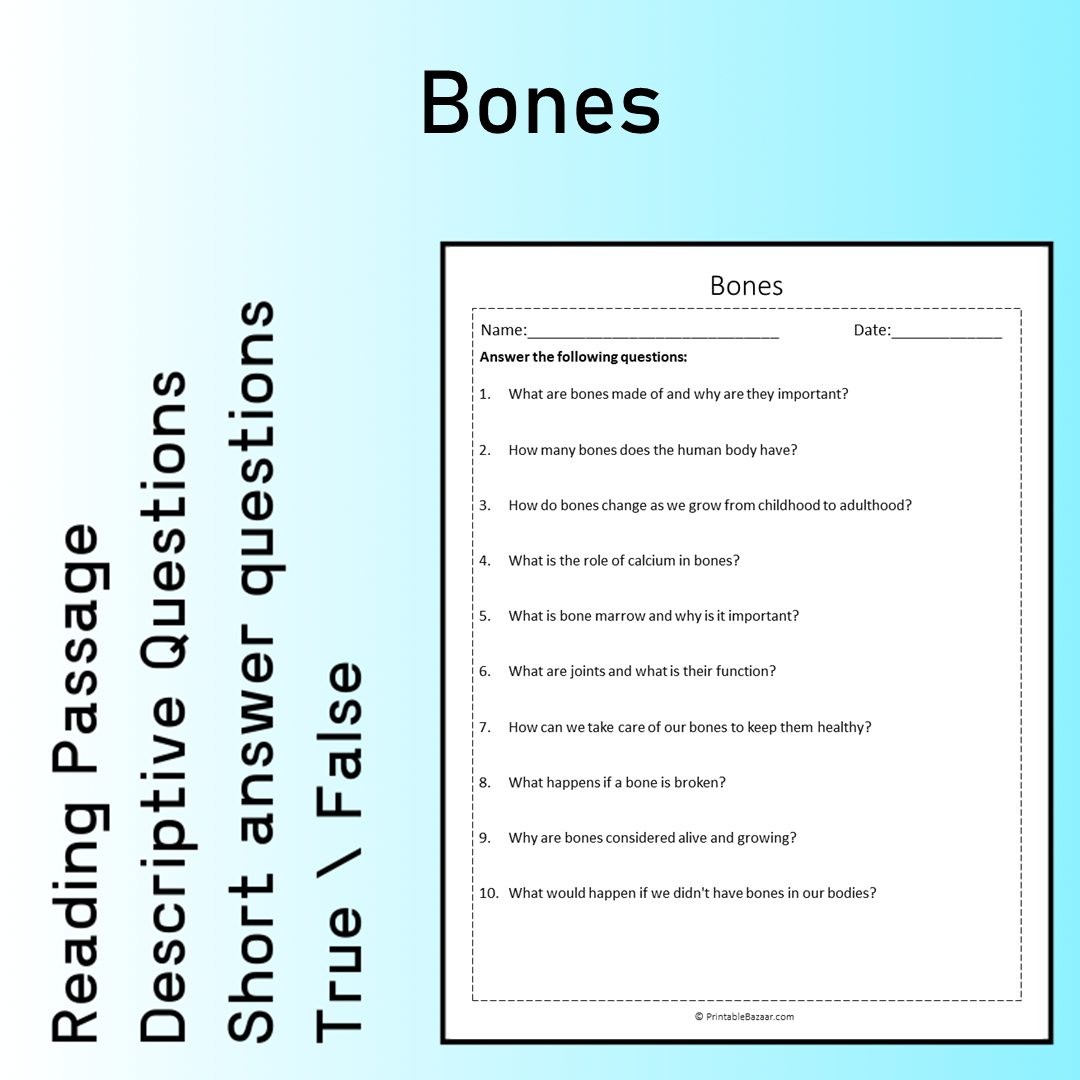 Discover the fascinating world of bones with our engaging digital worksheet! Perfect for young learners, this worksheet dives into the essential role bones play in our bodies, from providing structure and support to protecting vital organs. With fun facts and interactive questions, students will not only learn about bones but also appreciate how these incredible structures keep us strong and active. After all, without bones, we’d just be a pile of goo on the floor! 😄