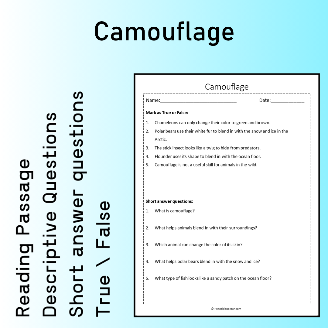 - Reading Passage: An informative and captivating text about camouflage and its importance in nature.