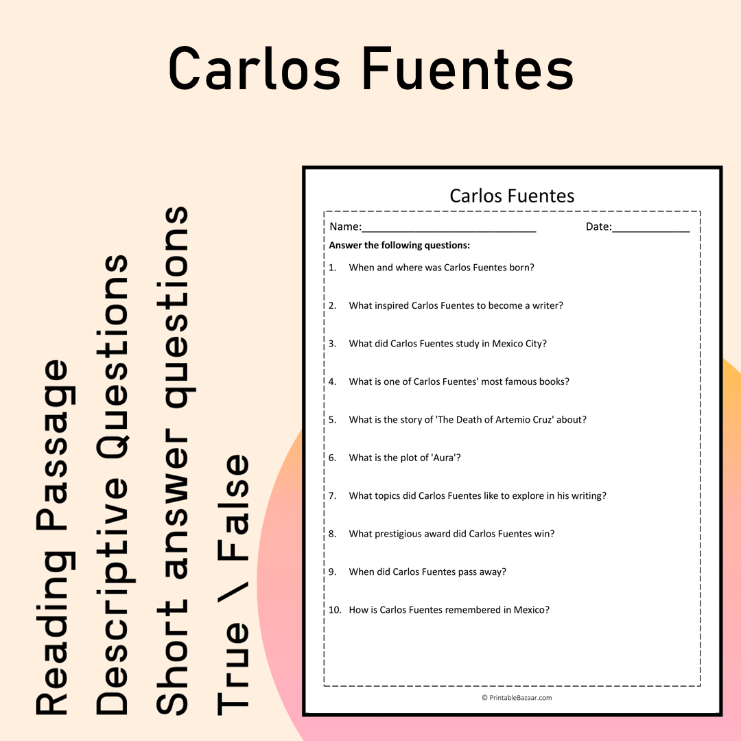 Carlos Fuentes | Reading Comprehension Passage Printable Activity